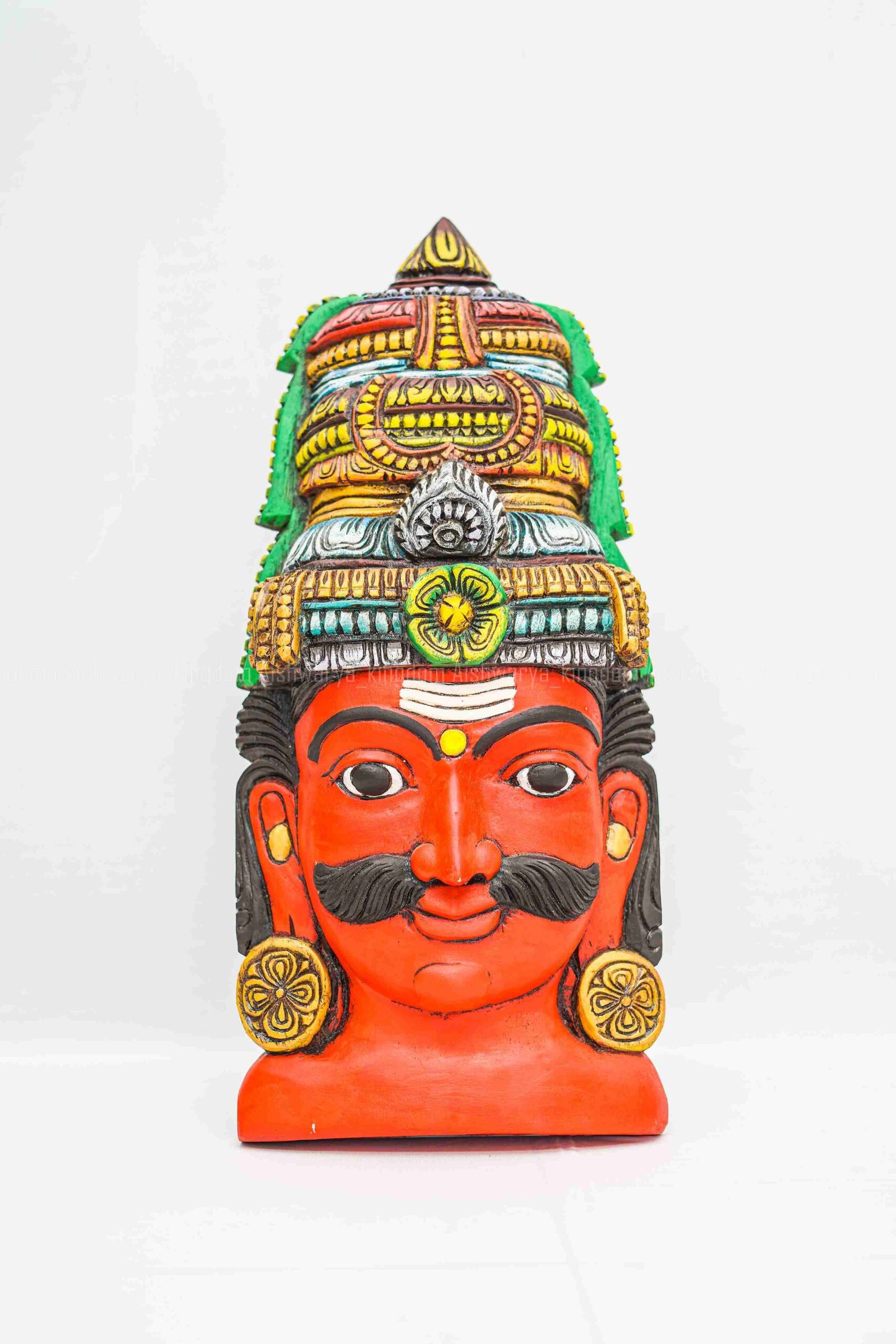 Artistry: The detailed craftsmanship reflects the artisan’s skill in depicting Ayyanar’s dynamic form and vibrant expressions.