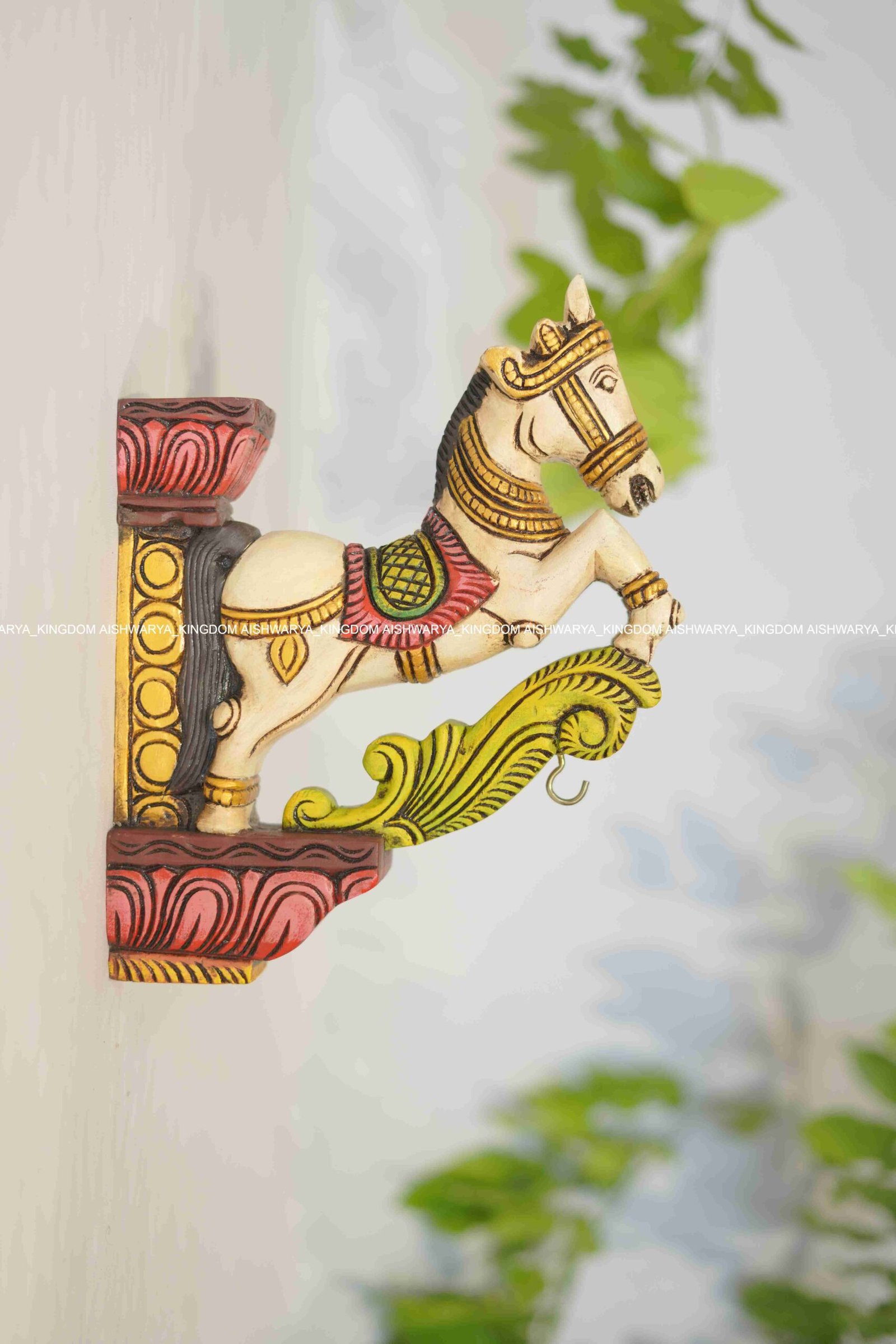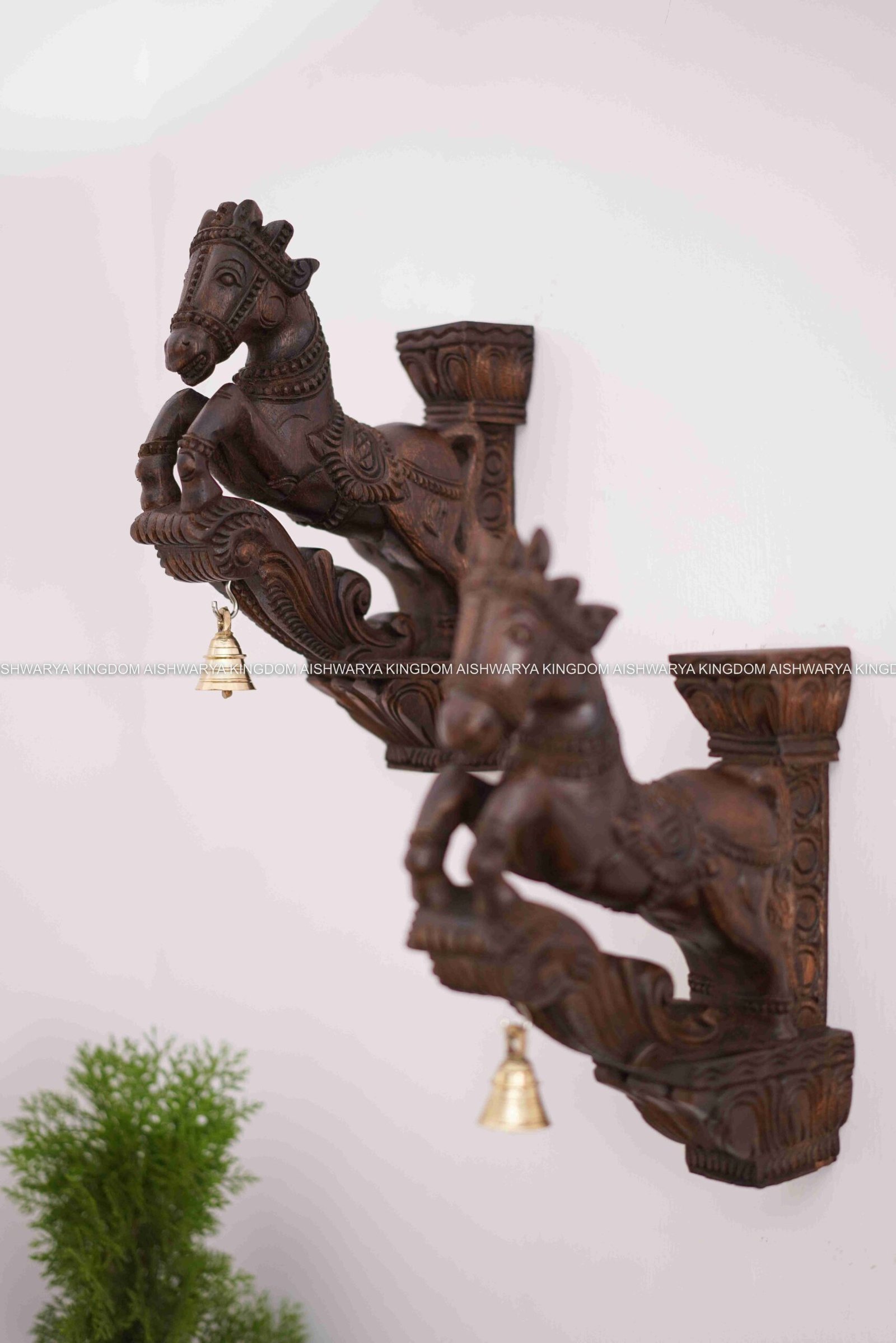 The HORSE BRACKET, crafted from premium mahogany wood, is a striking decor piece that embodies the spirit and grace of horses. This intricately designed bracket features detailed carvings of a horse, showcasing its powerful form and elegant posture. The rich, deep tones of the mahogany enhance the visual appeal, adding warmth and sophistication to any space. Ideal for displaying shelves or as a standalone art piece, it combines functionality with artistic beauty. Perfect for horse enthusiasts and admirers of fine craftsmanship, this bracket serves as a timeless tribute to the majesty of these magnificent animals.