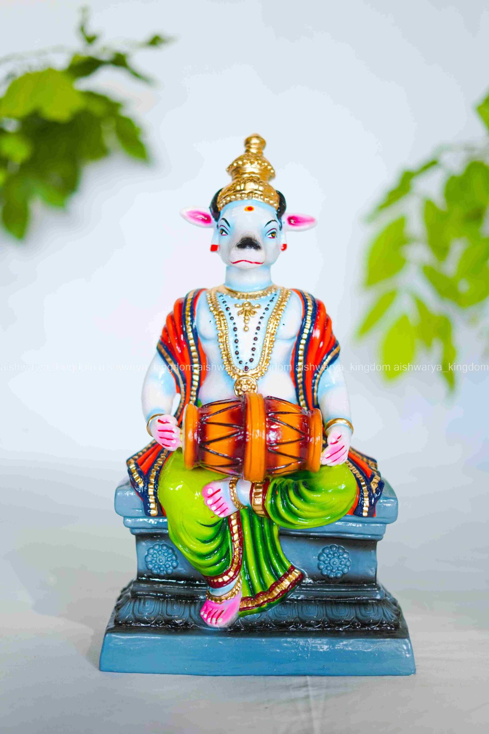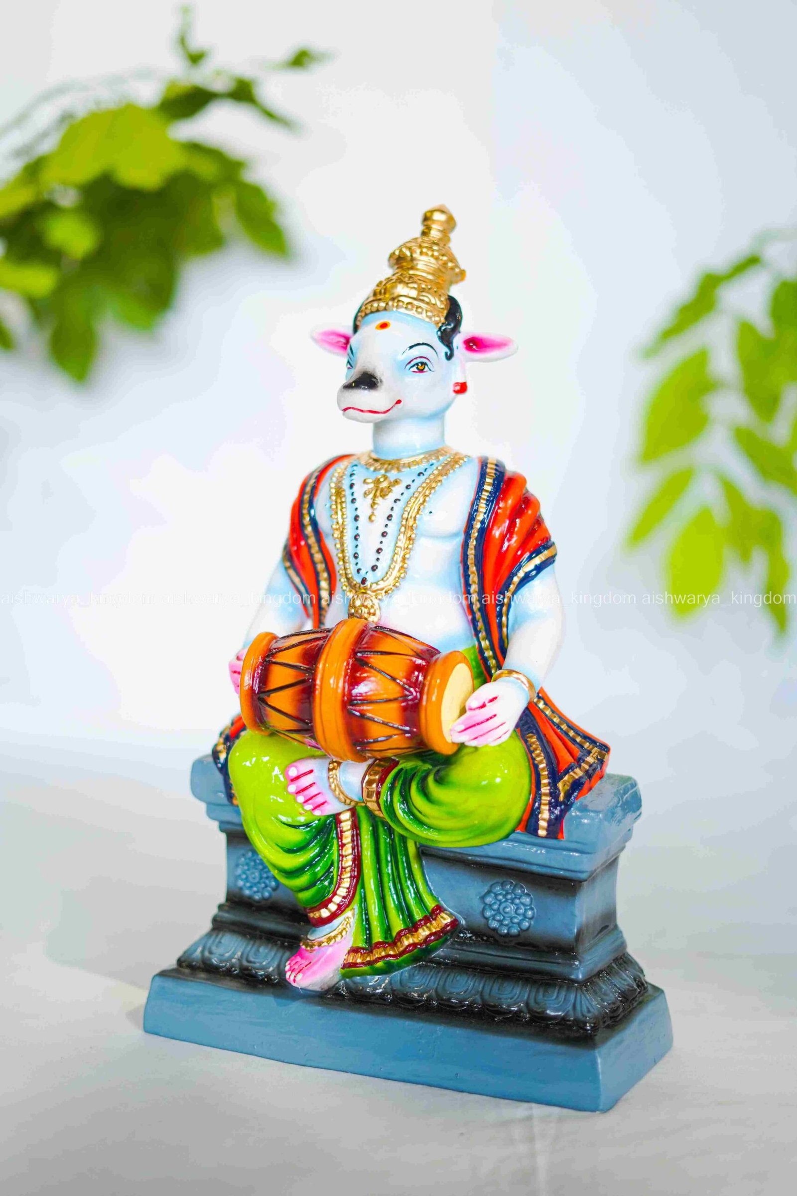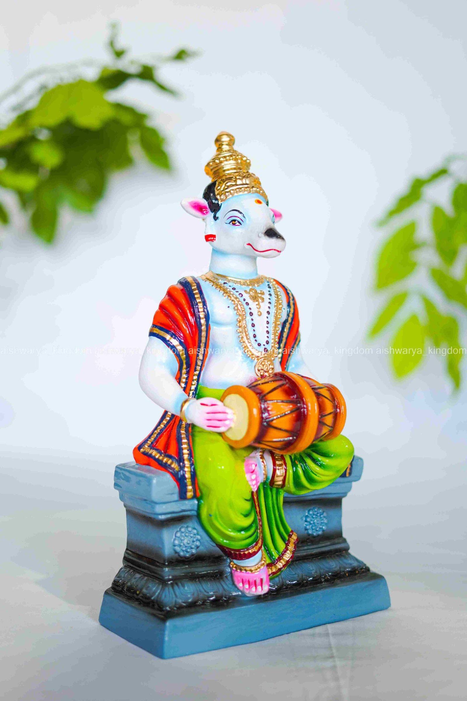 Nanthidevar is typically shown in vibrant attire, reflecting the rich customs of South Indian worship. Including this doll in a Golu setup can highlight local legends and celebrate the diversity of deities worshiped in the region.